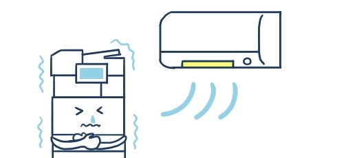 冷房や加湿器の側に複合機を設置すると、機械内部に水分が溜まり、それが原因でパーツが汚れ、トラブルが起こりやすくなります。私たちが対応した例では、複合機の画像処理に関連するパーツが損傷し、印刷物に線が入るようになってしまいました。